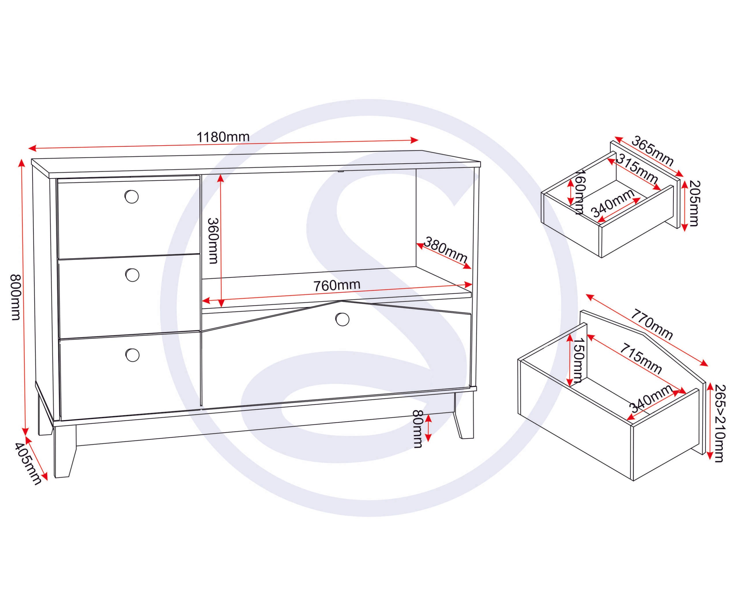 CODY 2 DOOR 4 DRAWER STORAGE UNIT - WHITE/PINE EFFECT