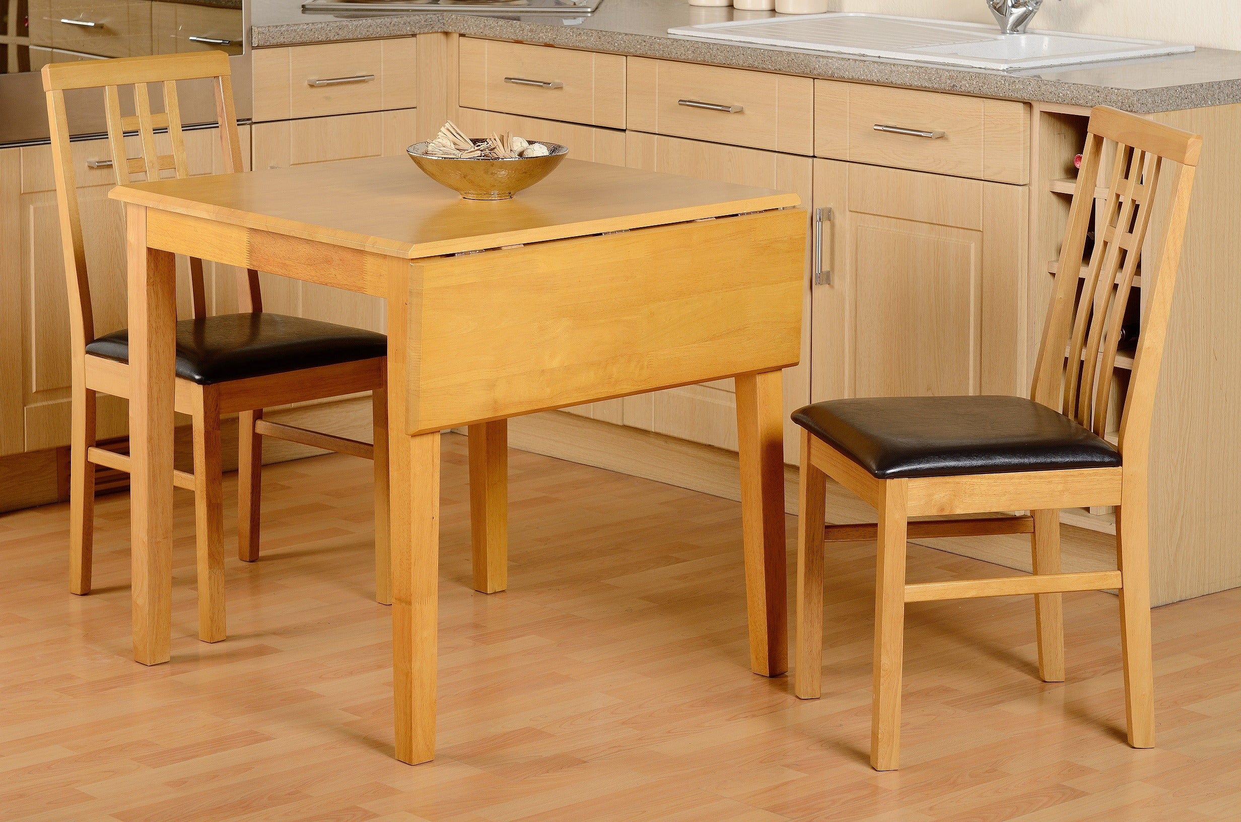 VIENNA DINING SET (X2 CHAIRS) - MEDIUM OAK/BROWN PU